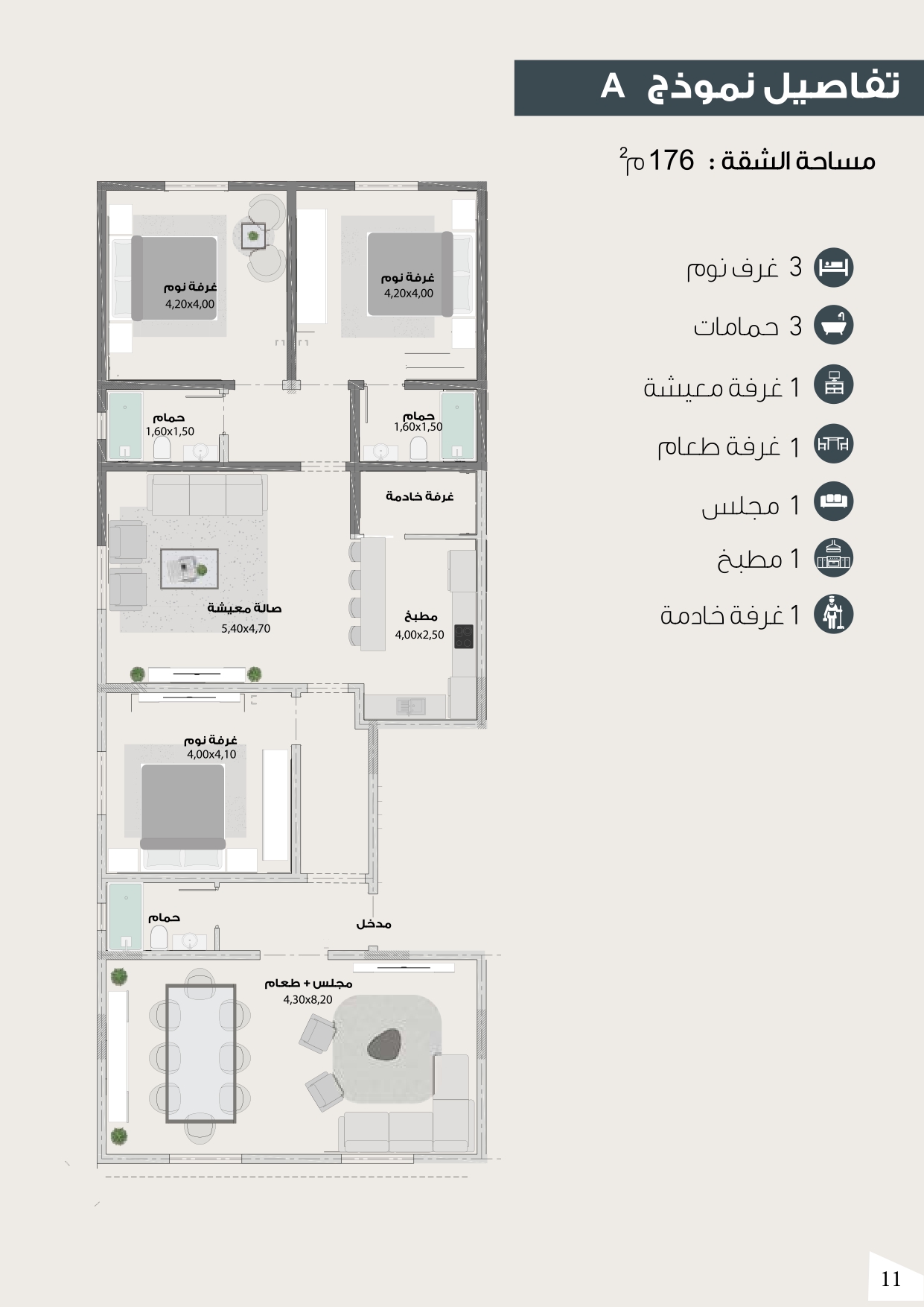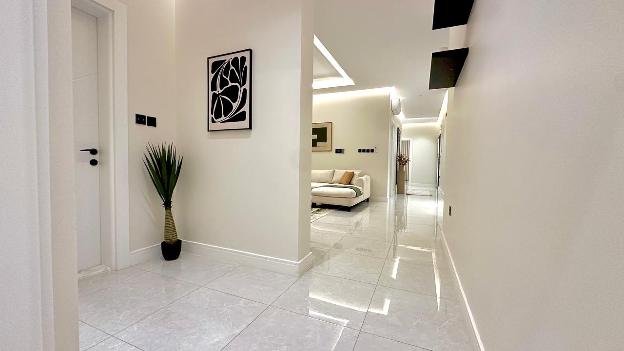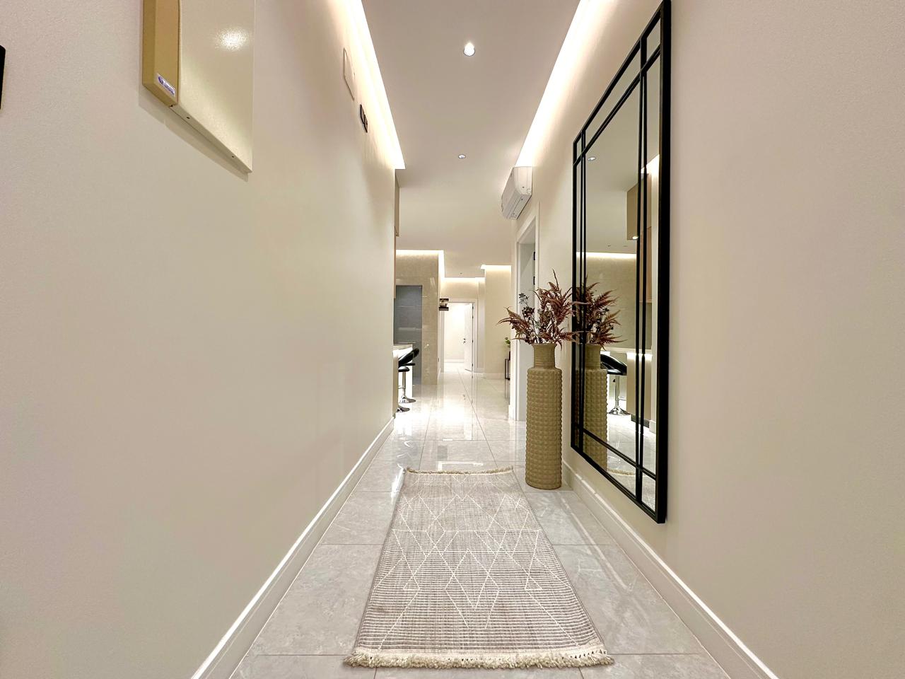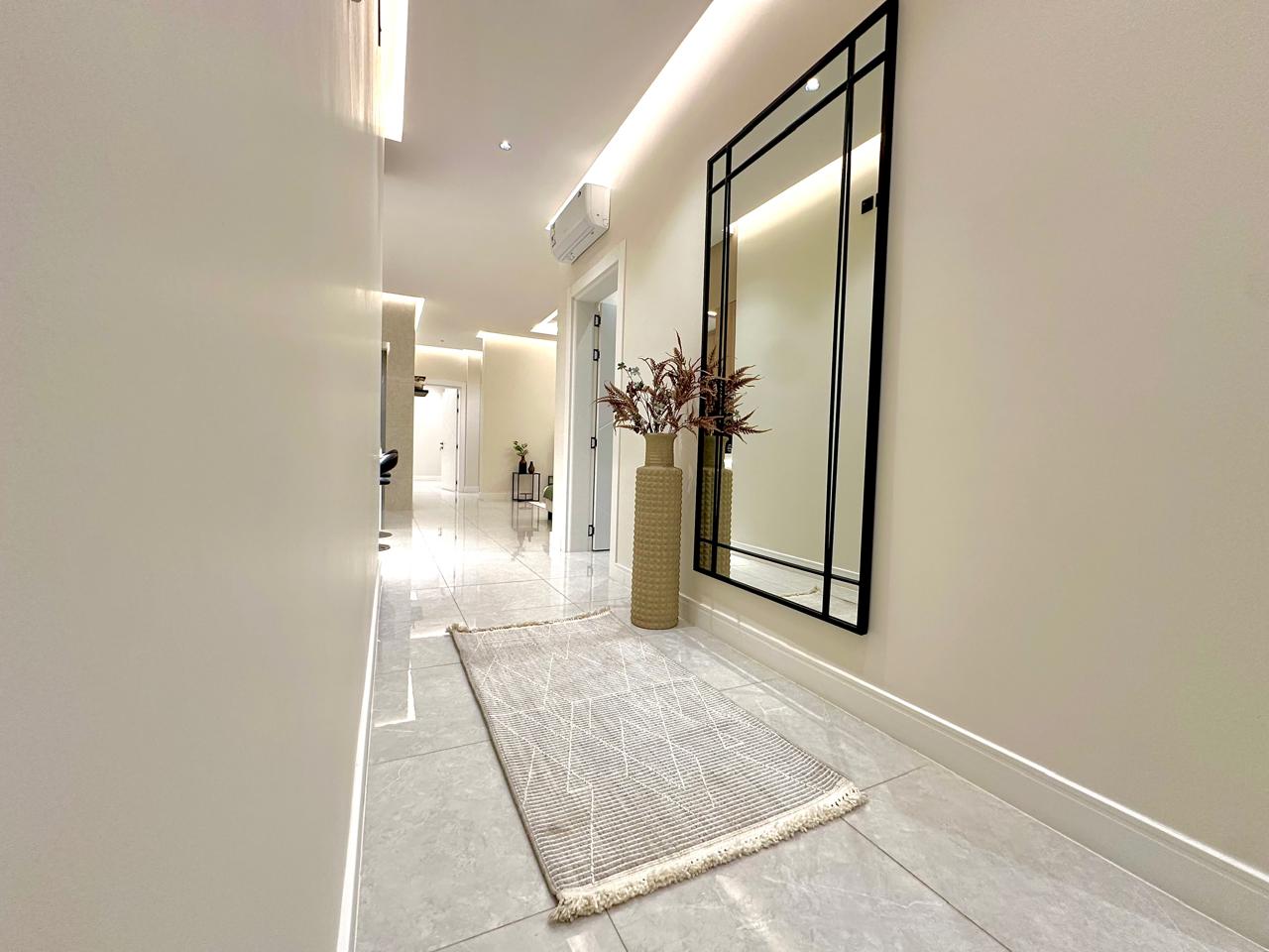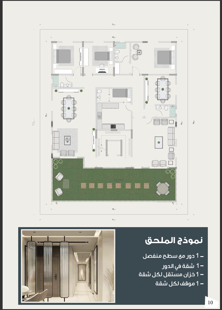 يتكون المشروع من اربعة طوابق وملحق يضم كل طابق منها شقتين.